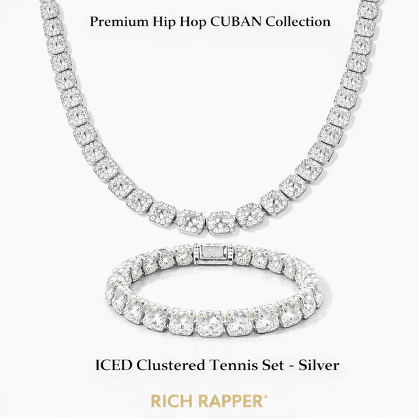 This iced clustered tennis set looks absolutely stunning in person. The stones shine brilliantly and the chain with bracelet combination gives a complete luxury look. The quality feels premium, the fit is perfect, and it instantly upgrades any outfit with a bold, classy statement.