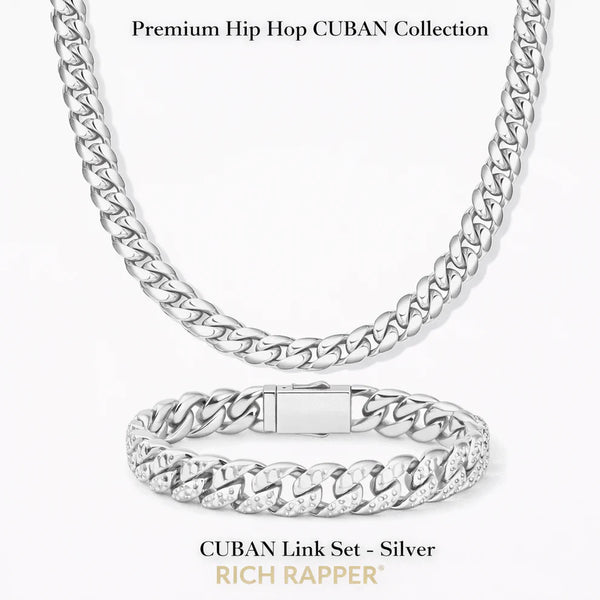This Cuban link set is perfect for everyday wear. The silver finish looks clean and premium, and the chain with bracelet combination gives a strong yet minimal statement. It feels comfortable, durable, and stylish enough to wear from casual outings to special occasions.