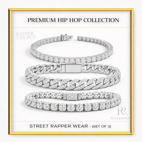This triple bracelet set is absolutely fire. The shine is bold, the detailing is clean, and wearing all three together gives a powerful street-style statement. The quality feels solid and premium, and I get compliments every time I step out wearing it.