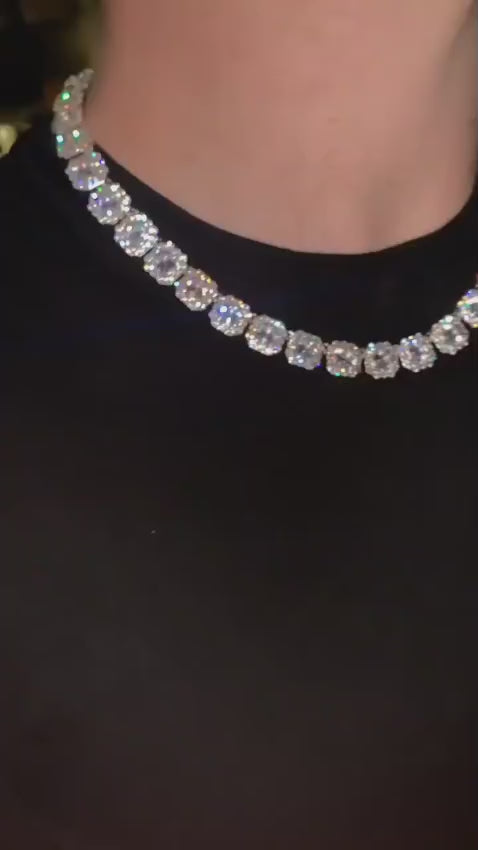 ICED CLUSTERED TENNIS CHAIN - SILVER