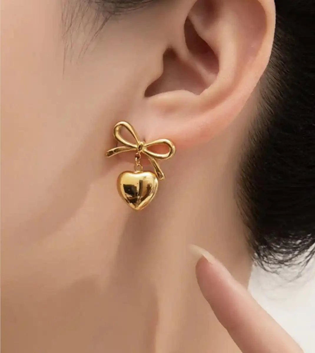 - RIBBON HEART STUDS EARRINGS (₹599 value) - Romantic heart design