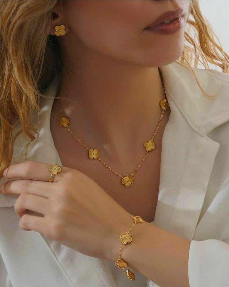 CLOVER JEWELLERY GOLDEN SET (ANTI TARNISH )
