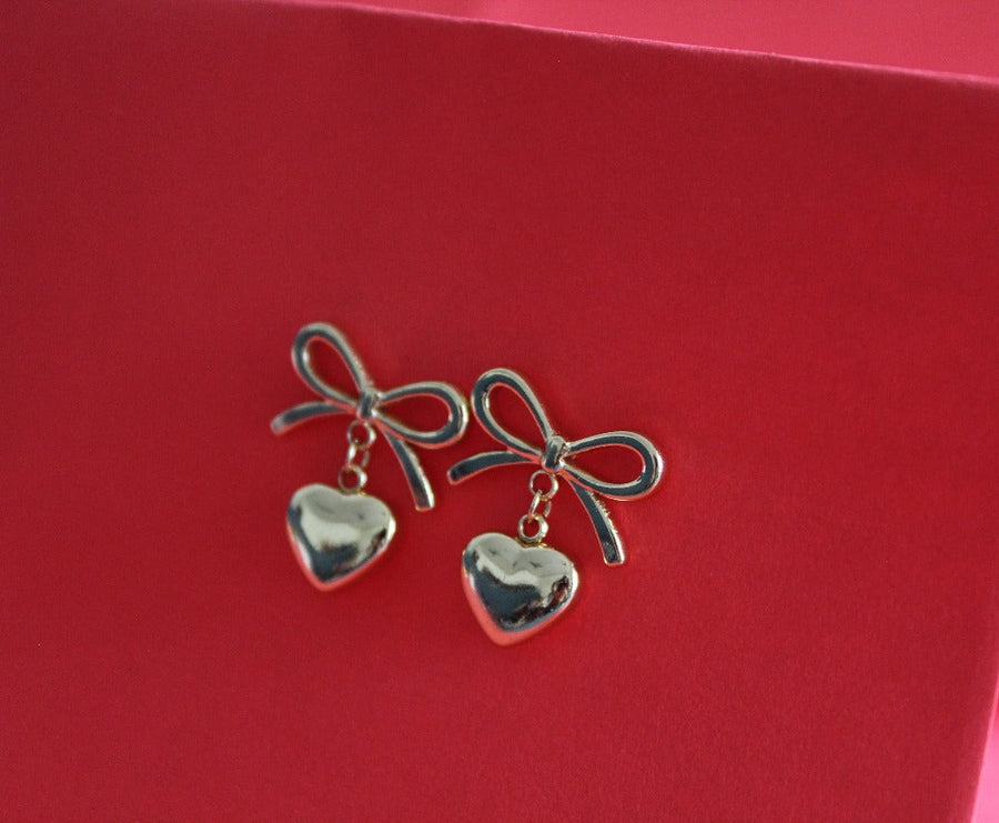BOW & HEART CHARM EARRING