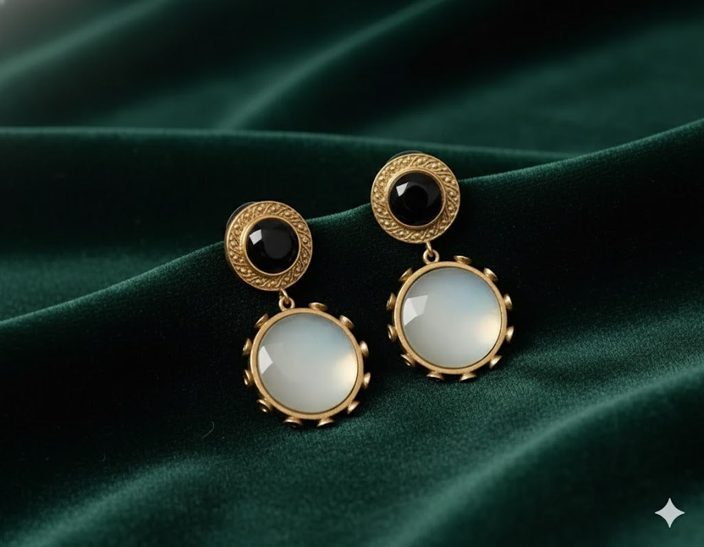 🤍 Elegant Minimalism: Featuring soft dusty-white stones with a gentle sheen, these earrings exude quiet luxury — perfect for those who appreciate refined simplicity.