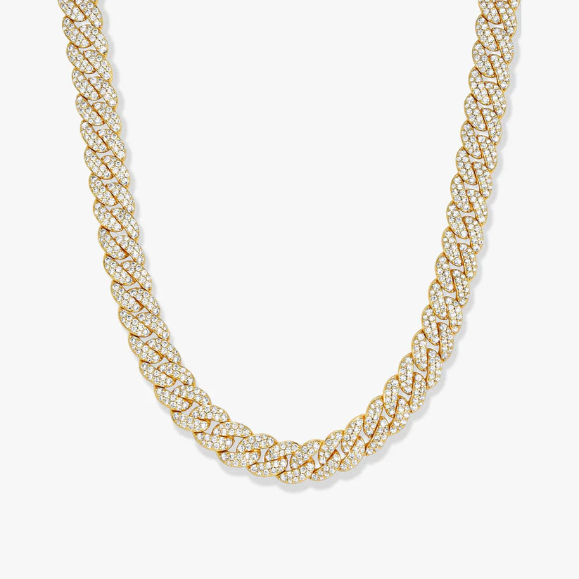 Premium ICED Cuban Chain set in Gold & Silver by Rich Rapper. Luxury hip hop necklace with CZ stones & bold street style.