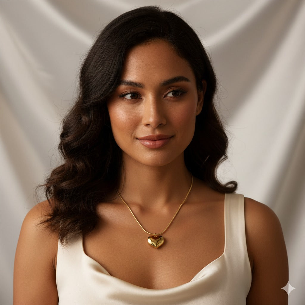PUFFED HEART PENDANT (ANTI - TARNISH)