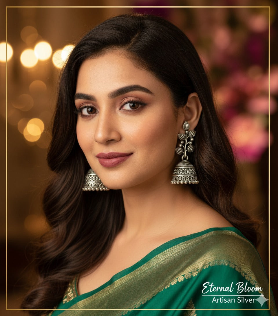 Embrace vintage allure with VINE & BELL OXIDIZED JHUMKA β where tradition blooms in every curve and chime.